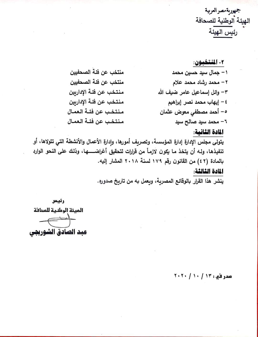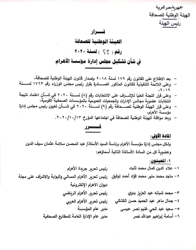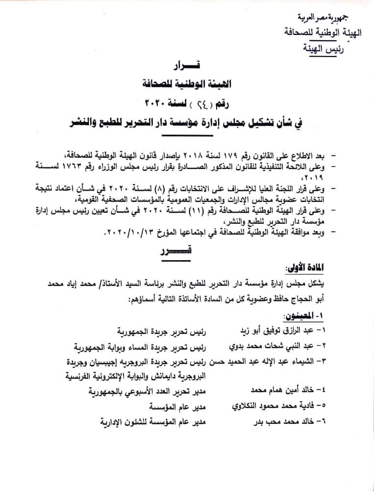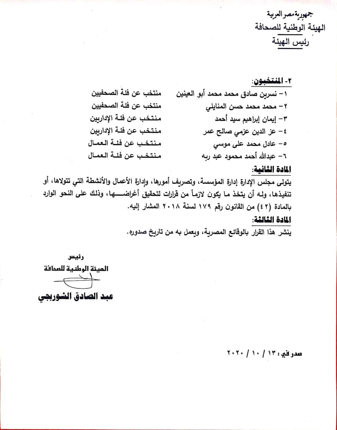 وأكد رئيس الهيئة الوطنية للصحافة أن التعيينات الجديدة جاءت استكمالاً للإجراءات التي اتخذتها الهيئة لتنفيذ مرحلة التطوير الشاملة بعد تعيين رؤساء مجالس الإدارات ورؤساء التحرير الجدد.