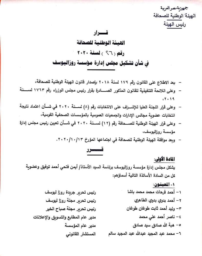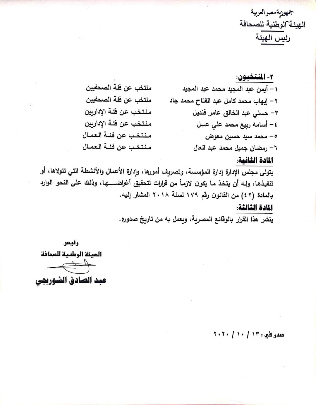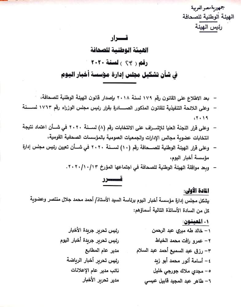 وأكد رئيس الهيئة الوطنية للصحافة أن التعيينات الجديدة جاءت استكمالاً للإجراءات التي اتخذتها الهيئة لتنفيذ مرحلة التطوير الشاملة بعد تعيين رؤساء مجالس الإدارات ورؤساء التحرير الجدد.