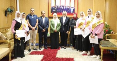 كرمت حنان مجدي، نائب محافظ الوادي الجديد، اليوم الخميس، الفائزات بمسابقة دوري المعلومات التي نظمها مركز إعلام الخارجة بالتعاون مع جهاز شئون البيئة والهيئة المصرية العامة لتنشيط السياحة تحت عنوان " بلدنا سياحيةوبيئتنا نقية"، بمشاركة مدارس التعليم الثانوى العام والفني بإدارة الخارجة التعليمية، فى إطار التوعية باستضافة مصر قمة المناخ Cop27 نوفمبر القادم.