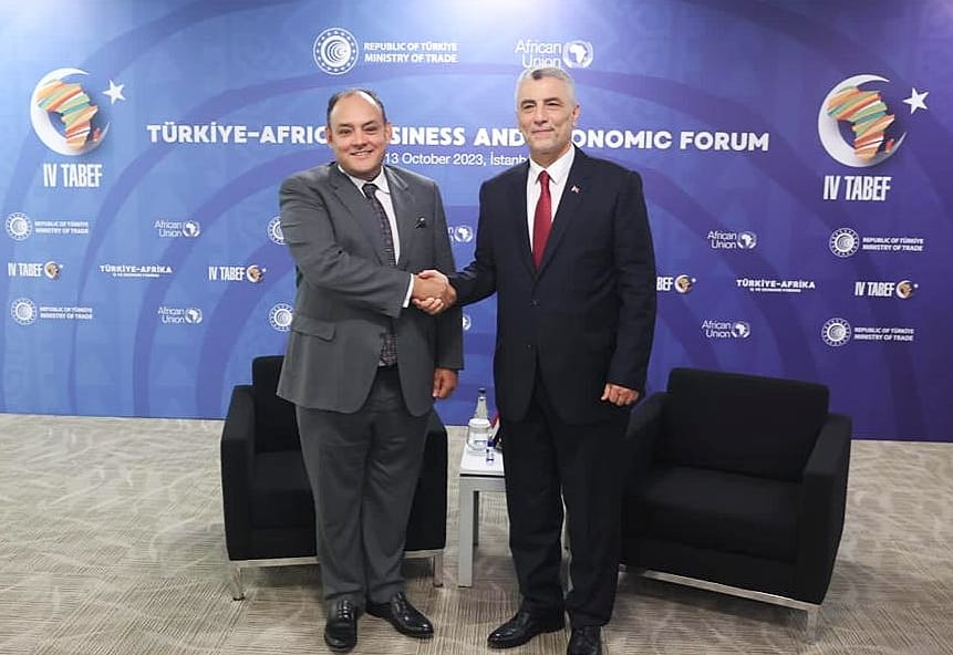 وتوجه الوزير بالشكر لنظيره التركي على دعوته للمشاركة في المنتدى الاقتصادي والتجاري التركي الأفريقي، الذي مثل فرصة متميزة لالتقاء ممثلي الدول الأفريقية مع الجانب التركي لتبادل الرؤى والأفكار حول آفاق التعاون المشترك بهدف تعزيز العلاقات التجارية والاستثمارية الأفريقية مع تركيا.