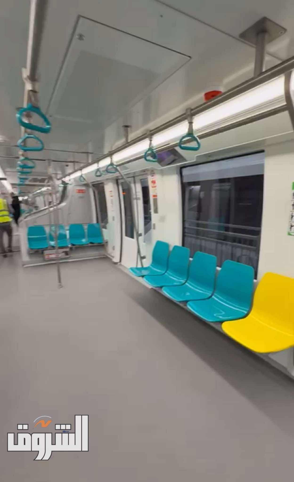 كما رصدت «الشروق» تركيب أبواب حواجز السلامة «Platform Screen Doors» على رصيف المحطة، بين الرصيف والقطار لضمان حماية الركاب، أما داخل عربة المونوريل، فتبرز علامة المشروع من الأمام، وهى صورة تمزج بين عين حورس المصرية ووسيلة المواصلات الحديثة، بينما تتناغم ألوان الكراسى الأزرق الجنزارى والأصفر مع شعار المونوريل الموجود فى المحطات والعربات، وقد تم تصميم العربة لتكون مفتوحة من الداخل لتحقيق انسيابية الحركة، ولا يوجد مكان للسائق لأنها تعمل بدون سائق.