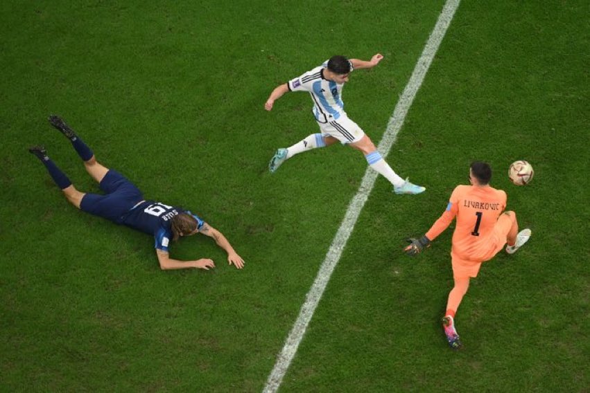 وأحرز ألفاريز الهدف الثاني له والثالث لمنتخب بلاده ضد كرواتيا في مباراة نصف نهائي كأس العالم قطر 2022.