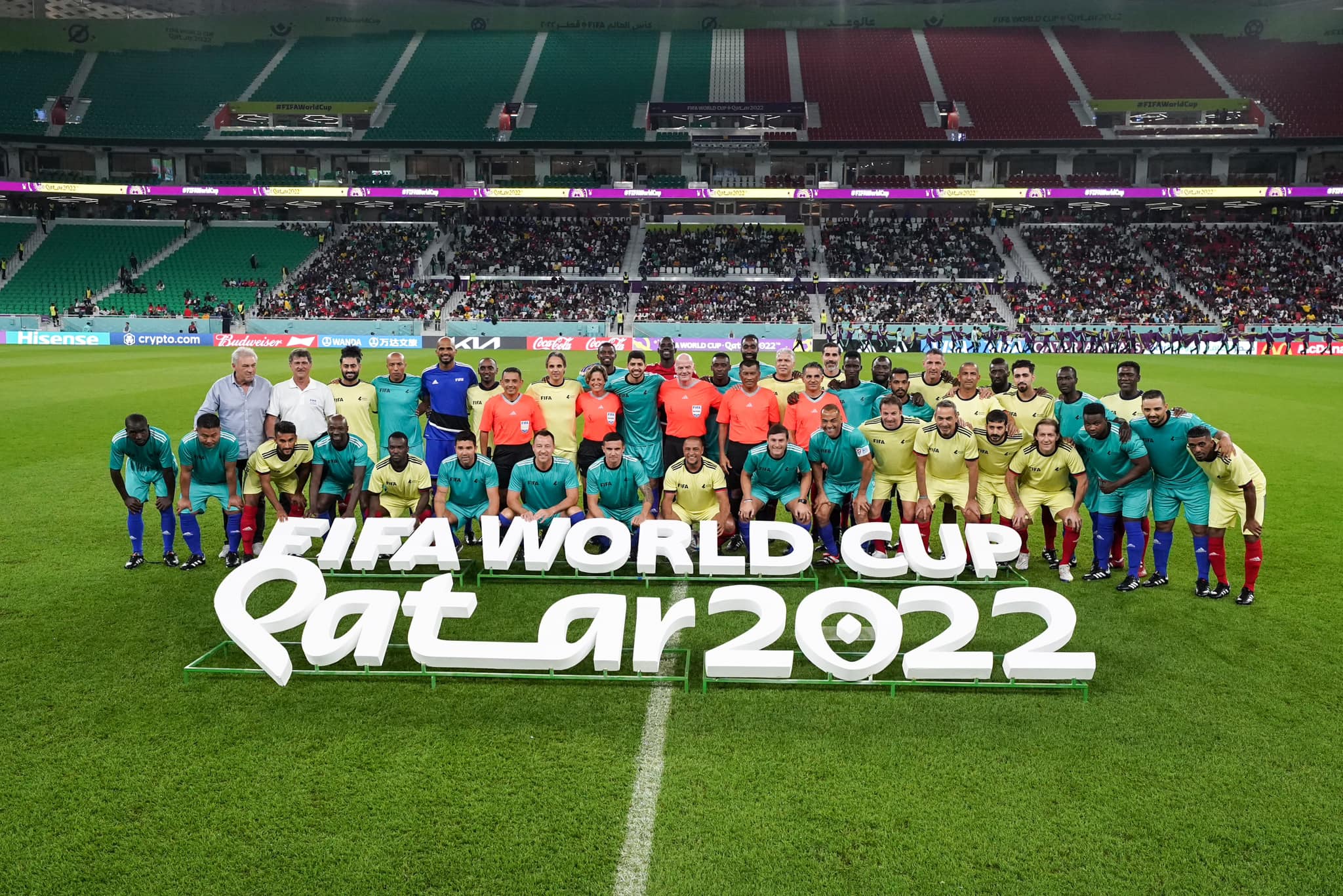 واستمرت المباراة لمدة 60 دقيقة بين العمال المتطوعون في قطر والأساطير على ملعب الثمامة أحد الملاعب المستضيفة لمباريات كأس العالم 2022.