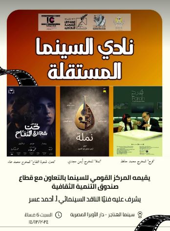 يُذكر أن نادي السينما المستقلة ينظمه المركز القومي للسينما شهريًا بالتعاون مع قطاع صندوق التنمية الثقافية.