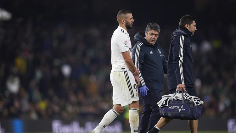 وتعرض بنزيما للإصابة خلال المباراة التي فاز بها ريال مدريد أمس الأحد 2 / 1 على مضيفه ريال بيتيس في الدوري الإسباني.