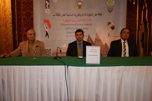 وبدء اللواء عبد المعين حسن رئيس الاتحاد المصري للقفز بالمظلات حديثه بالترحيب بالحضور والدكتور اشرف صبحى مساعد وزير الشباب والرياضة واكد ان الاتحاد المصري للمظلات يهدف الى تربية الأجيال التي تقول وتبرز ان الشباب المصري الواعي محب لبلده وينتمى اليها من خلال الاشتراك في جميع الاحداث الرياضية الخاصة بالمظلات وان الاتحاد يشترك به 15 الف من الشباب وان الاتحاد تم انشائه منذ ما يقرب من سبعة وعشرون سنة وأضاف ان اول بطولة قفز حر يرجع تاريخها سنة 1950 واكد على ان رياضة القفز بالمظلات قديمة قدم القدماء المصريين والتي اكدت النقوش على الجدران ان الفراعنة كانوا يزاولوا أنشطة الرياضات الجوية وعن البطولة أضاف عبد المعين ان قوة البطولة تكمن انها تأتى تحت رعاية رئيس الجمهورية وهو ما يضفى قوة للبطولة خاصة ان المكان الذى سوف يستضيف البطولة هو سفح الاهرامات والتي تعبر عن قيمة وتاريخ مصر الكبير خاصة ان هناك اكثر من 200 قافز بالمظلات سوف يقفز يوميا على سفح الاهرامات والتي سوف تفتح رسميا في الثانى من مارس القادم.