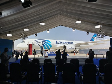 تنظم شركة مصر للطيران بعد قليل، احتفالية كبرى بالصالة رقم (4) في مطار القاهرة الدولي بمناسبة استلام أحدث طائراتها بعيدة المدى من طراز 350-900.