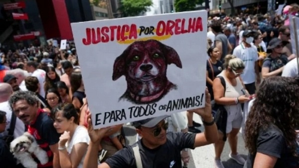 ولوح مارينيو وأشخاص آخرون، بشرائط بيضاء وغنوا أغنية كتأبين لأوريليا، وهي كلبة قتلت جنوبي البرازيل في يناير في قضية سببت غضبا على مستوى البلاد.