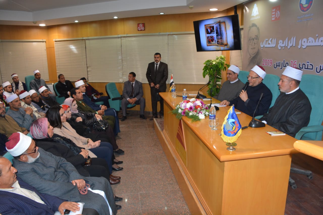 وعقد المفتي، ندوة دينية، اليوم الخميس، بمعرض دمنهور الرابع للكتاب بمكتبه مصر العامة، شهدت لقاء مفتوحًا مع قيادات الأوقاف والأزهر بحضور وكيل وزارة الأوقاف ومدير المنطقة الأزهرية.