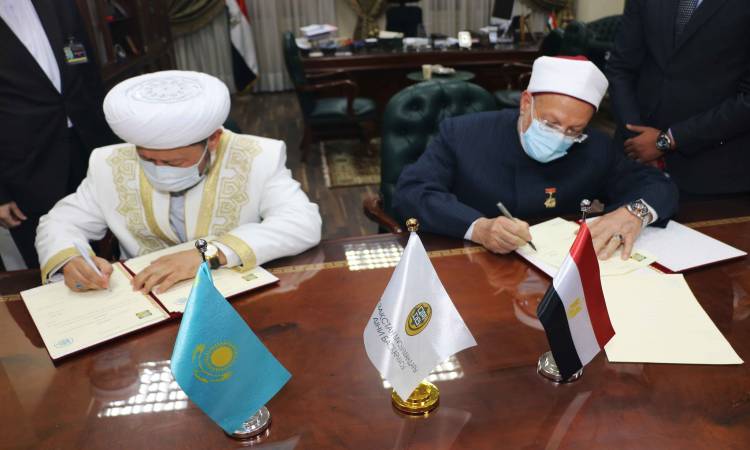 وقع فضيلة الدكتور شوقي علام مفتي الجمهورية، رئيس الأمانة العامة لدور وهيئات الإفتاء في العالم، والمفتي الأعلى ورئيس الإدارة الدينية لمسلمي كازاخستان الشيخ ناوريزباي حاج تاجونولي، وبحضور سفير كازاخستان بالقاهرة، اتفاقية تعاون بين دار الإفتاء المصرية والإدارة الدينية لمسلمي كازاخستان.