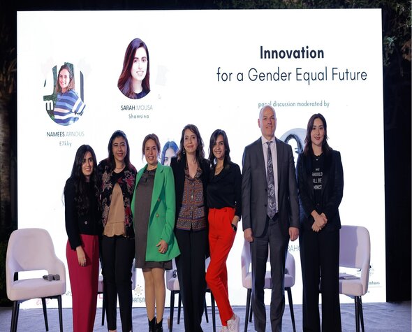 كما تم تنظيم حلقة نقاش ملهمة حول "الابتكار من أجل مستقبل متساوٍ بين الجنسين"، أدارتها ثريا بهجت (ناشطة نسوية فنلندية مصرية، تعمل ضمن مشاريع اجتماعية وناشطة في حقوق المرأة)، واستضافت مجموعة من السيدات المصريات اللاتي قدمن مبادرات لدعم وتمكين وإلهام النساء والفتيات، ومنهن: ناميس عرنوس مؤسس إحدى المنصات التي تقدم حكي قصص النساء الملهمات، ويارا ياسين الشريك المؤسس لإحدى الشركات المجتمعية لتصنيع منتجات يدوية مختلفة من إعادة تدوير أكياس البلاستيك، ورانيا أيمن إحدى رائدات الأعمال، وسارة موسى إحدى رائدات الأعمال، ونور إمام مؤسس إحدى المنصات التي تقدم التوعية عن صحة المرأة.