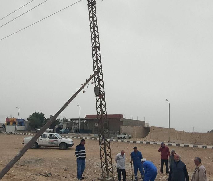 دفعت هندسة كهرباء مدينة رأس سدر بمحافظة جنوب سيناء، بفريق فني لإصلاح أحد أعمدة الضغط العالي وإعادته لأصله عقب تعرضه لميل جراء سوء االأحوال الجوية التي شهدتها المدينة اليوم.