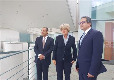 واستعرض العناني -خلال اللقاء- الاكتشافات الأثرية الأخيرة في مصر، والتطور الهائل في إنشاء المتاحف الوطنية العملاقة مثل المتحف المصري الكبير والمتحف القومي للحضارة المصرية، ومتحف سوهاج القومي، وعملية التطوير لعدد من المتاحف من بينها المتحف المصري بالتحرير، واتفق الجانبان على أهمية تبادل الخبرات في هذا المجال، وتقديم الجانب الألماني برامج تدريب لرفع قدرات الكوادر المصرية في مجال إدارة المتاحف وعملية الترميم.