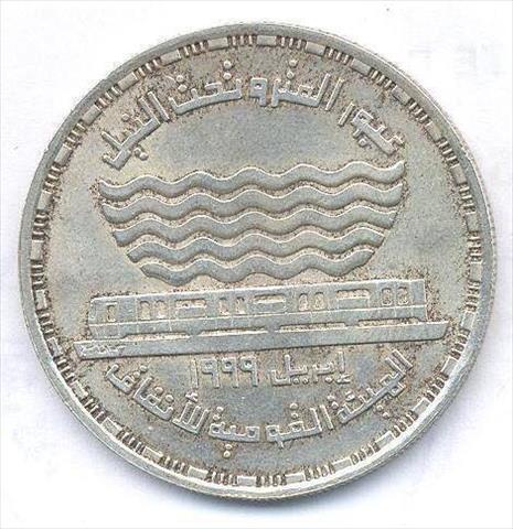 2- عملة من فئة الخمس جنيهات بمناسبة مرور خط المترو تحت النيل عام 1999.