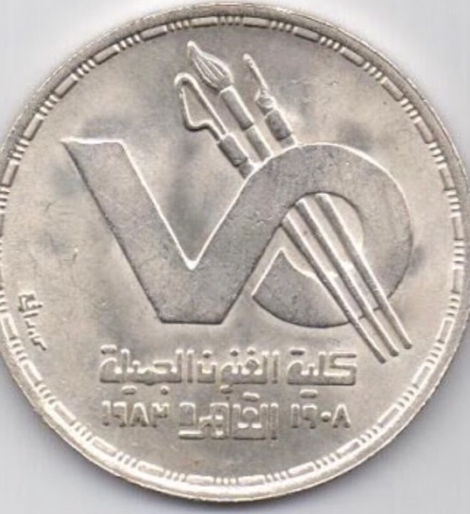 1- عملة فضية وكانت تساوي جنيهًا واحدًا، بمناسبة مرور 75 عامًا على تأسيس كلية الفنون الجميلة بالزمالك والتي تأسست عام 1938، ونفذها عام 1984، وكان وجه العملة به شعار جامعة حلوان وفي الخلفية رقم 75 والتي رسمت بشكل فني ومتصلين ببعضهما، وكان رقم خمسة على هيئة "بالتة ألوان".