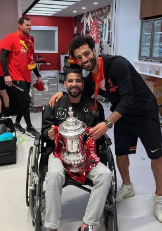 احتفل محمد صلاح، لاعب ليفربول، بلقب كأس الاتحاد الإنجليزي مع مؤمن زكريا، الذي حضر مباراة تشيلسي من ملعب ويمبلي.