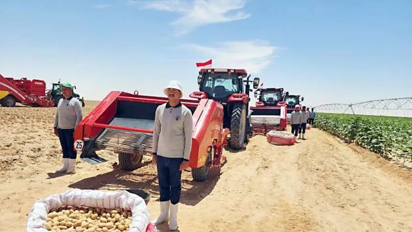 وكان الرئيس عبدالفتاح السيسي قد شهد في وقت سابق من اليوم الأحد، افتتاح موسم حصاد القمح ومصنع إنتاج البطاطس في شرق العوينات بمحافظة الوادي الجديد.