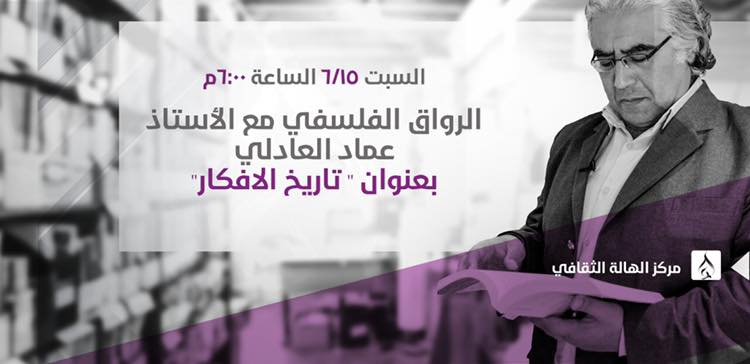 يستضيف مركز الهالة الثقافي بالمعادي، ندوة جديدة من الرواق الفلسفي، بعنوان "رحلة مع تاريخ الأفكار"، للأستاذ عماد على العادلي، المستشار الثقافي السابق لدي مكتبات «أ»، وذلك مساء غدًا السبت، في تمام الساعة السادسة.