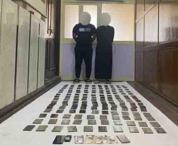 - القبض على شخصين "لأحدهما معلومات جنائية" - مقيمان بدائرة مركز شرطة أشمون بالمنوفية- حال استقلالهما سيارة بدائرة قسم شرطة العطارين، وبحوزتهما (150 طربة حشيش وزنت 15 كيلو، ومبلغ مالي، و3 هواتف محمولة).