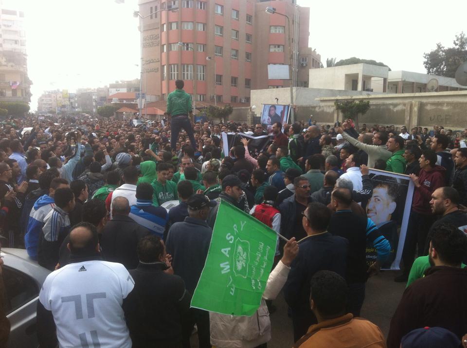 وكان عدد من الشباب نظم مظاهرة تنديدًا بترحيل الكابتن حسام حسن المدير الفني للنادي المصري، إلى سجن طرة، بعد قرار النيابة حبسة أربعة أيام على ذمة التحقيقات فى واقعة الاعتداء على مصور تابع لمديرية أمن الإسماعيلية، عقب مبارة النادى المصري مع فريق المحلة بالجولة 34 من الدوري الممتاز.