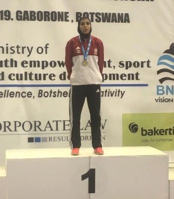 توجت جيانا فاروق، لاعبة المنتخب الوطني للكاراتيه، بالميدالية الذهبية في بطولة إفريقيا والمقامة حاليًا في بتسوانا، خلال الفترة من 9 إلى 16 يوليو 2019.