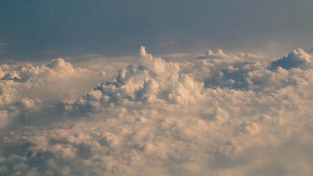 حين تغوص وسط السحاب، لا تكاد ترى شيئا في البداية. ثم فجأة تجد كتلة داكنة محاطة بلون أبيض. وعليك أن تتجه صوب البقعة الداكنة.