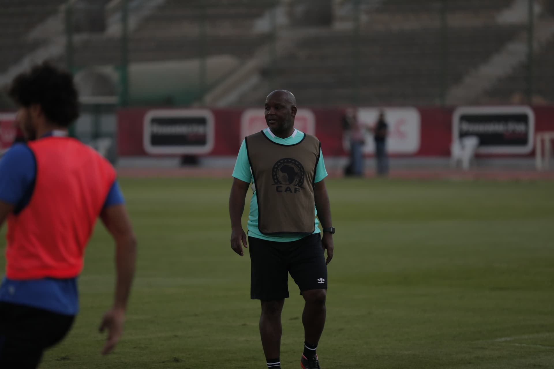 عقد بيتسو موسيماني، المدير الفني للأهلي، محاضرة سريعة مع اللاعبين قبل انطلاق مران الفريق اليوم الأحد على ملعب التتش بالجزيرة.