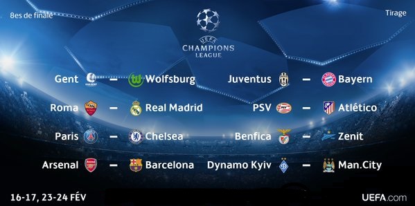 أجريت قرعة دوري أبطال أوروبا اليوم الأثنين بمدينة نيون السويسرية لتحديد مواجهات دور الستة عشر بالبطولة والتي ستقام بشهر فبراير ومارس من العام الجديد 2016.