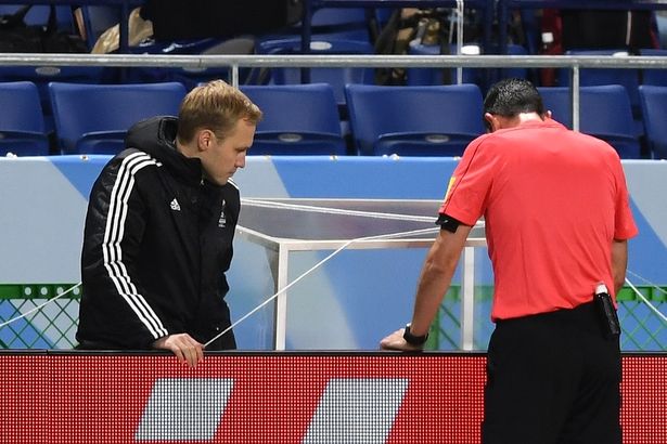ولفت حكم خارج الملعب الانتباه إلى مخالفة ارتكبها اورلاندو بيريو وذهب الحكم المجري فيكتور كاساي إلى جانب الملعب لمراجعة الواقعة على شاشة كمبيوتر.