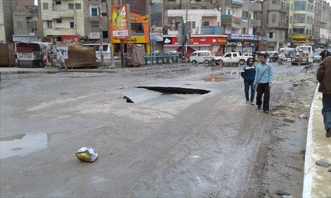 شهد شارع السد العالي بمدينة الفيوم، صباح اليوم الأربعاء، هبوط أرضي كبير أسفر عنه حفره قطرها 5 أمتار وتصدعات في أسفلت الطريق امتدت لعشرات الأمتار.