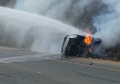 أُصيب شخصان بحروق بعد اشتعال النيران بسيارة إثر انقلابها بالطريق الصحراوي بوادي النطرون.