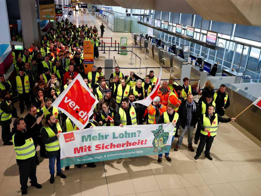 ويطالب اتحاد فيردي النقابي برفع أجور أفراد الأمن في المطارات إلى 20 يورو (23 دولارا) في الساعة. وعرض أرباب العمل زيادات صغيرة فقط.