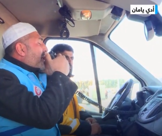 عرضت وكالة الأنباء التركية «الأناضول»، مساء اليوم الأربعاء، مقطع فيديو يرصد إمامًا يؤذن للصلاة من داخل سيارات الإسعاف في مناطق الزلزال بولاية أديامان التركية، بعد تهدم المساجد.