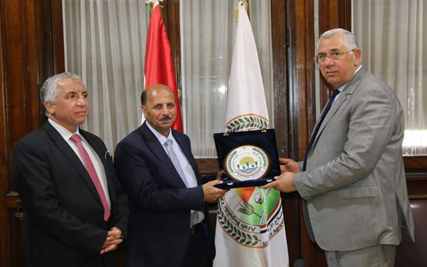 كرم السيد القصير وزير الزراعة واستصلاح الأراضي، الدكتور حمدي الموافي رئيس المشروع القومي لتطوير الأرز بالوزارة بمناسبة حصوله على الميدالية الذهبية في معرض جنيف الدولي للاختراعات لعام 2022 عن ابتكار تطبيقي باستنباط صنف أزر "سخا سوبر 300" العملاق، الذي يتحمل ندرة المياه.