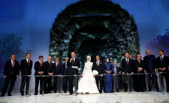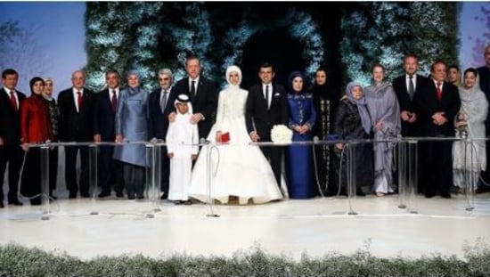 في حفل زفاف ضخم وخيالي احتفل رئيس تركيا رجب طيب أردوغان بزفاف ابنته سمية على سلجوق ابن رجل الأعمال التركي أوزدمير بيرقدار.