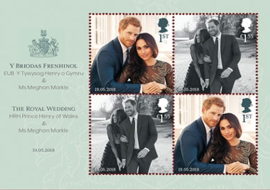 وقالت هيئة البريد، إن الطوابع ستصدر اعتبارا من يوم السبت حيث من المقرر أن يتزوج هاري وماركل في حفل رائع بكنيسة في قلعة وندسور وهي مقر ملكي قرب لندن.