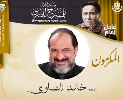 يكرم المهرجان القومي للمسرح المصري في دورته السادسة عشرة، برئاسة الفنان محمد رياض، الفنان خالد الصاوي عن مجمل مسيرته الفنية، وإسهاماته في المسرح المصري خلال حفل الافتتاح يوم السبت 29 يوليو.