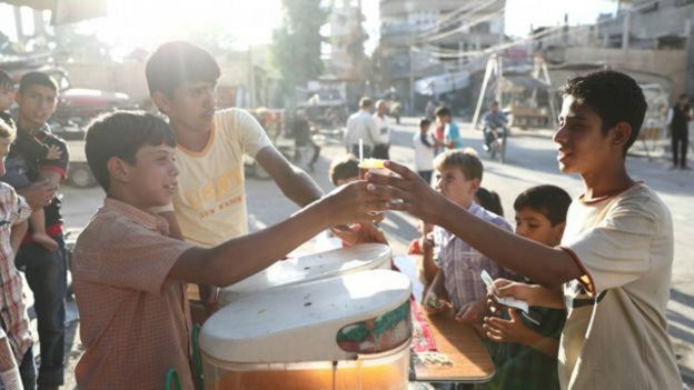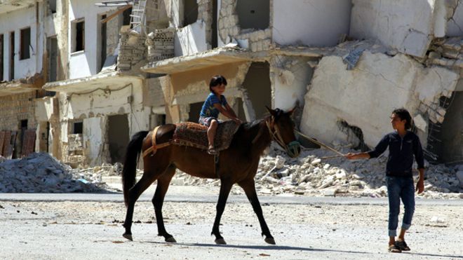 سكان حلب الغربية الذي تسيطر عليه الحكومة يحتفلون بعيد الاضحى بفضل وقف اطلاق النار