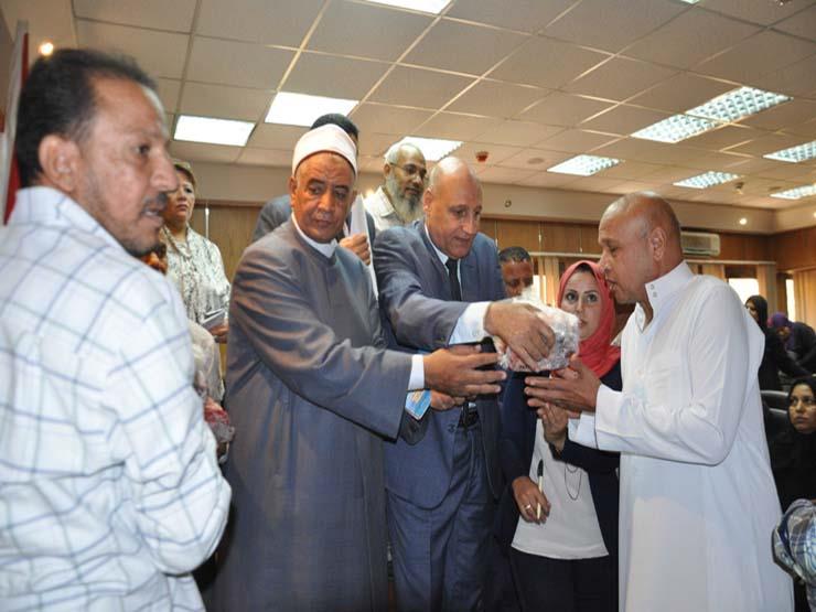 واستقبل المحافظ، وزير الأوقاف بمكتبه بديوان عام المحافظة، ثم توجها إلى قاعة المجلس المحلي لتوزيع اللحوم على المواطنين.