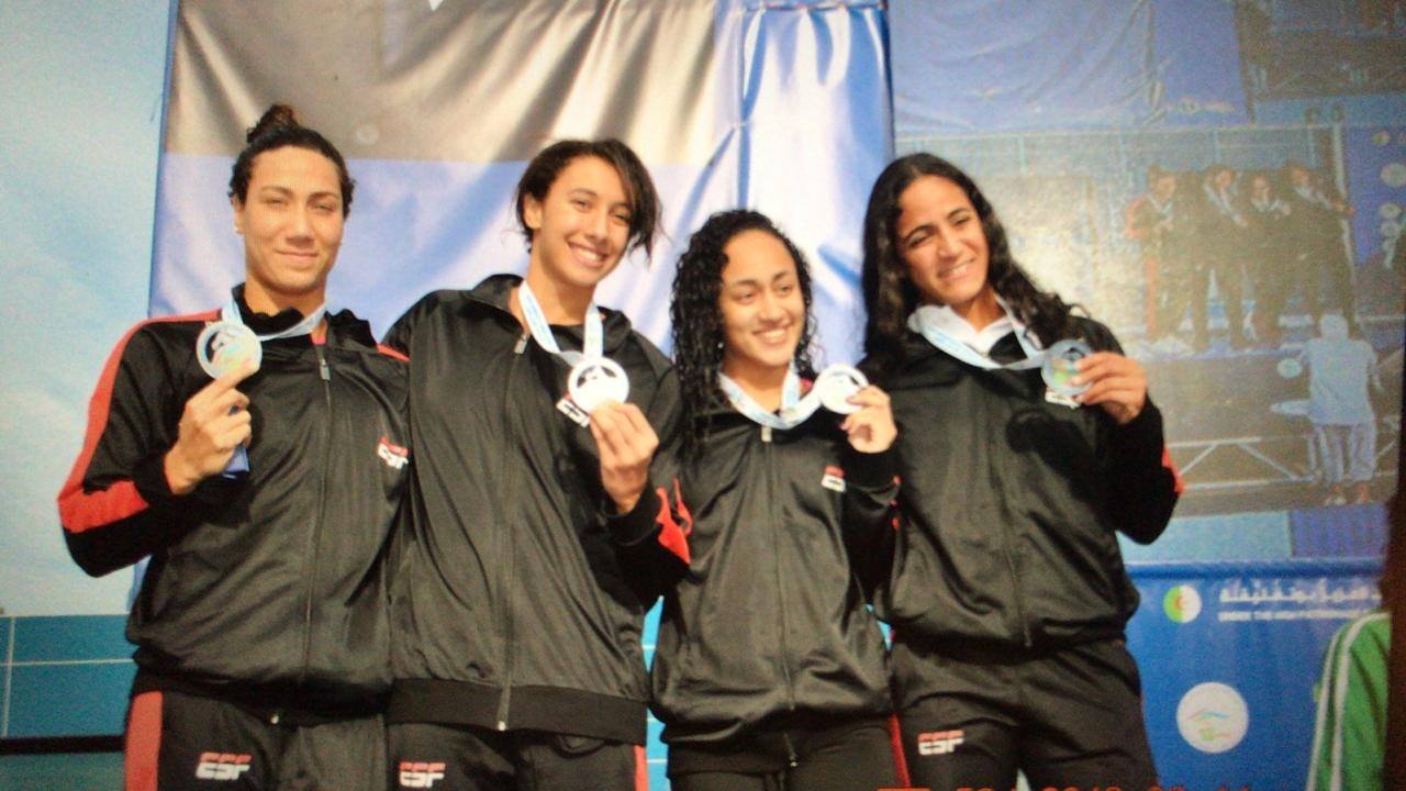 بينما حصل منتخب السيدات على فضية سباق 100 × 4 متر تتابع متنوع بزمن 4:15:96 دقيقة ومثله اللاعبات فريدة عثمان وهانيا مورو وسميحة محسن ورويدا هشام.