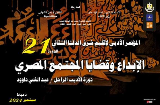 تشهد المدينة الشبابية برأس البر بمحافظة دمياط، بعد غد الثلاثاء، في الثانية عشرة ظهرا، انطلاق فعاليات المؤتمر الأدبي لإقليم شرق الدلتا الثقافي، في دورته الحادية والعشرين، بعنوان "الإبداع وقضايا المجتمع المصري"، "دورة الأديب الراحل عبد الغني داود"، وذلك برعاية الدكتور أحمد فؤاد هنو، وزير الثقافة، والدكتور أيمن الشهابي، محافظ دمياط، وتنظمه الهيئة العامة لقصور الثقافة، بإشراف الكاتب محمد ناصف، نائب رئيس الهيئة، ويستمر المؤتمر حتى الخميس 19 سبتمبر.