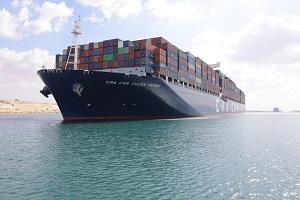 عبرت قناة السويس سفينة الحاويات العملاقة CMA CGM JULES VERNE ضمن قافلة الجنوب قادمة من سنغافورة ومتجهة إلى لبنان، وذلك بعد عبورها بأمان من منطقة البحر الأحمر وباب المندب.