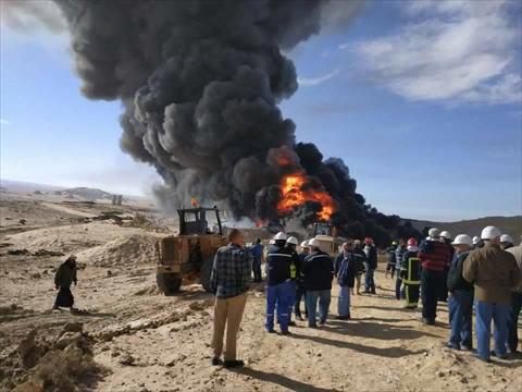 مازالت النيران مشتعلة في حقل بترول "أم عسل"، الذي يبعد عن مدينة رأس سدر 30 كيلو اتجاه مدينة أبوزبيمة بجنوب سيناء، حتى الآن، ولم تنجح المحاولات كافة في إخماد الحريق على الرغم من الدفع بعدد 25 سيارة مطافي، و7 سيارات مياه لتبريد المنطقة حول الحريق.