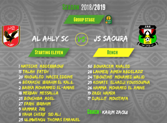 أعلن كريم زاوي المدير الفني لشبيبة الساورة الجزائري عن تشكيل فريقه لمواجهة الأهلي في المباراة التي ستُقام اليوم السبت على ملعب الجيش ببرج العرب بمدينة الإسكندرية ضمن منافسات الجولة السادسة من دور المجموعات لدوري أبطال إفريقيا.