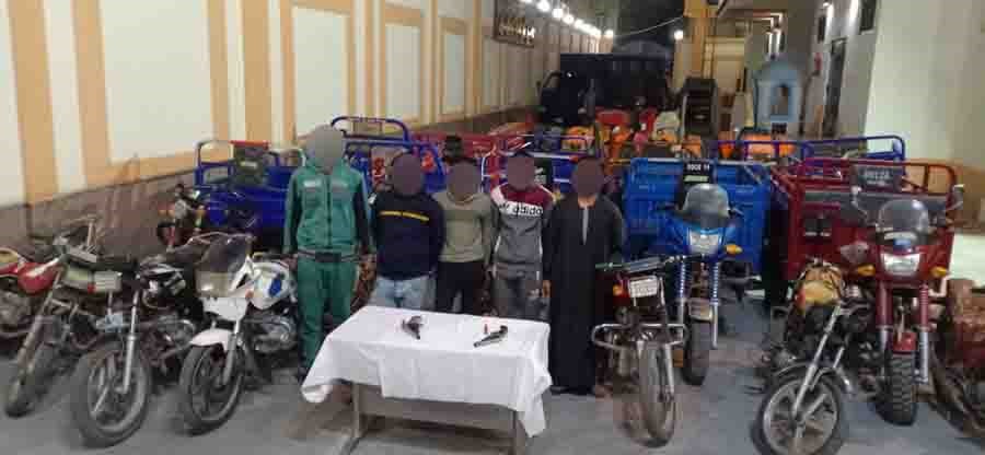 بمواجهتهم اعترفوا بارتكابهم 23 واقعة سرقة (11 دراجة نارية " تروسيكل "- 7 دراجة نارية "موتوسيكل" – 5 جرارات زراعية صغيرة).
