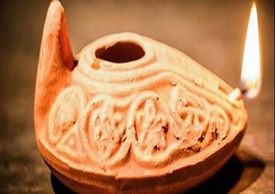 فالرأس مزينة بفرع نباتي الشكل أما الجبهة فتزين بشريط دائري، الأذن مدببة والحواجب مرفوعة لأعلى وهذه الملامح معروفة لدى أتباع الآله ديونيسوس، يوجد في أعلى الرأس ثقب خاص بملأ الزيت أما في أسفل الوجه يوجد ثقب آخر يستخدم كمشعل.