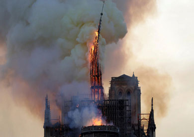 وكان حريق قد اندلع في سقف كاتدرائية (نوتردام)، أحد أشهر الصروح الدينية والسياحية في العاصمة الفرنسية، أمس الاثنين، ما أدى إلى سقوط سقف وبرج هذا المعلم بالكامل.