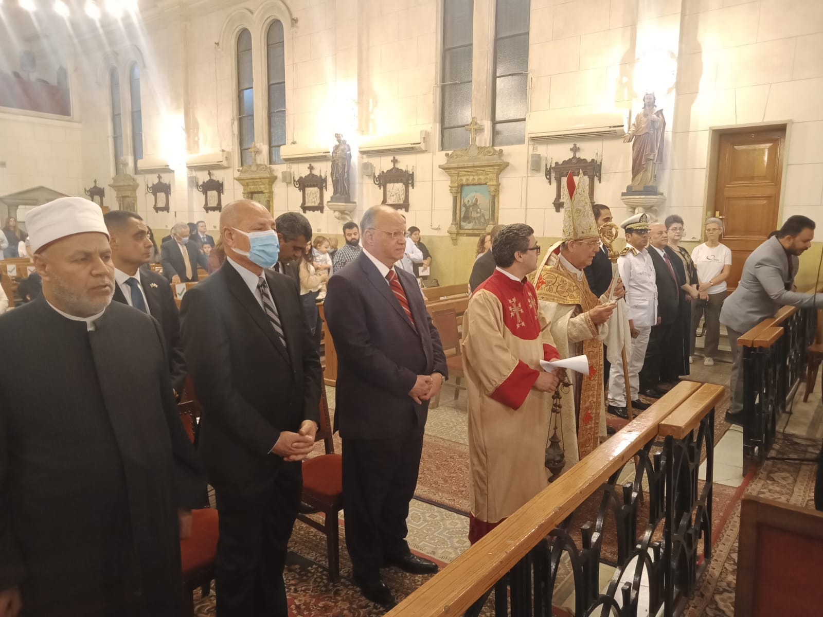 شهد خالد عبدالعال محافظ القاهرة مساء اليوم نائبًا عن الدكتور مصطفى مدبولى رئيس مجلس الوزراء احتفال بطريركية الأرمن الكاثوليك بعيد القيامة برئاسة المطران كريكور أوغسطينوس كوسا أسقف الإسكندرية للأرمن الكاثوليك وذلك بكنيسة القديسة تريزا الطفل يسوع بمصر الجديدة .