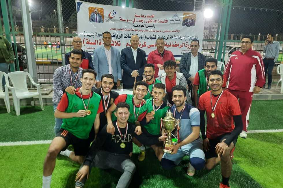أعلن الدكتور جمال سوسة، رئيس جامعة بنها، فوز الجامعة بالمركز الأول وبالميدالية الذهبية بالتصفيات النهائية للدورة الرمضانية للجامعات والمعاهد العليا المصرية في خماسي كرة القدم والتي أقيمت تحت رعاية الدكتور أيمن عاشور وزير التعليم العالي والبحث العلمي، ورئيس مجلس إدارة الاتحاد الرياضي المصري للجامعات، والدكتور أشرف صبحي، وزير الشباب والرياضة، وبمشاركة 32 جامعة مصرية.