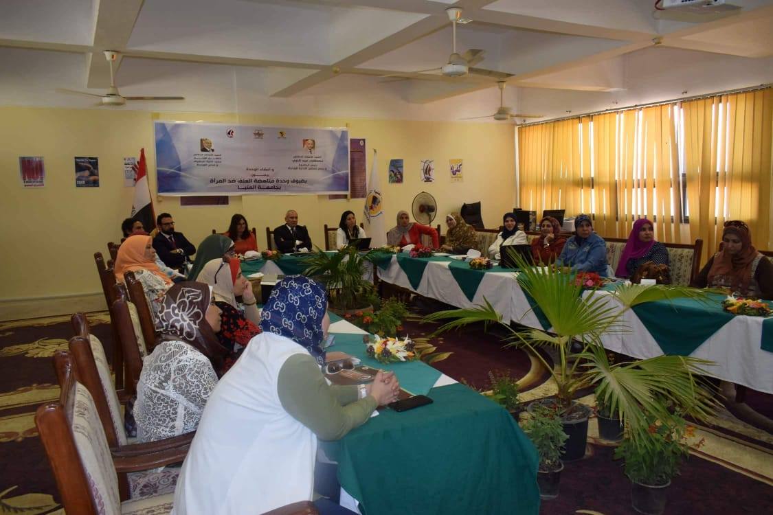 وناقشت الورشة عرضًا وتقريرًا مفصلاً عن أنشطة وفاعليات وحدة مناهضة العنف ضد المرأة داخل الجامعة وخارجها منذ إنشاء الوحدة من عامين وحتى الآن، والمجهودات التي يقدمها أعضاء الوحدة من خلال عملهم التطوعي لخدمة سيدات محافظة المنيا إحدى محافظات صعيد مصر، إلى جانب دراسة سبل التعاون المشترك وزيادة تفعيل دور الوحدة وأنشطتها خلال الفترة القادمة.
